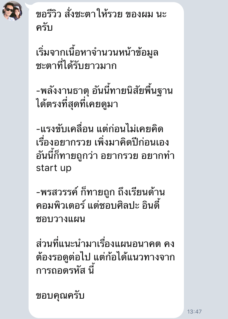 แล้วสรุปจัดทำเป็นไฟล์พิเศษเฉพาะดวงชะตาคุณ