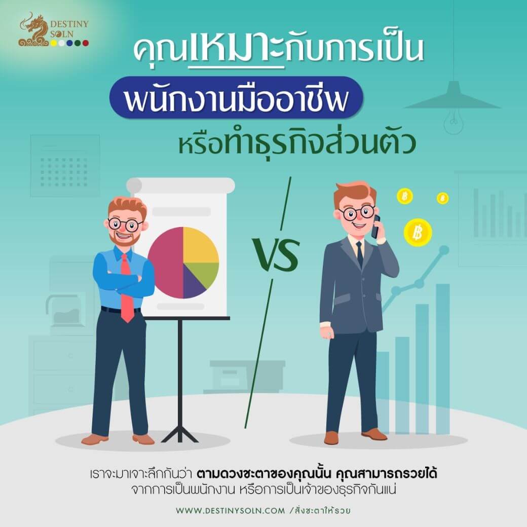 คุณอาจลังเลอยู่ว่าควรจะเปิดกิจการเป็นเจ้าของธุรกิจ หรือควรทำงานเป็นพนักงานมืออาชีพดี ด้วยเหตุนี้เราจึงเราจะมาลึกดวงชะตาของคุณเพื่อดูว่า จริงๆแล้วคุณสามารถรวยได้จากการเป็นพนักงาน หรือการเป็นเจ้าของธุรกิจกันแน่ เพราะใช่ว่าการทำธุรกิจส่วนตัวจะรวยกว่าการเป็นพนักงานมืออาชีพเสมอไป หากเราเลือกในหนทางที่ไม่เหมาะสม เราก็จะไม่สามารถดึงศักยภาพออกมาได้เต็มที่ ผลลัพธ์ที่ได้ย่อมออกมาผิดจากที่เราวางไว้